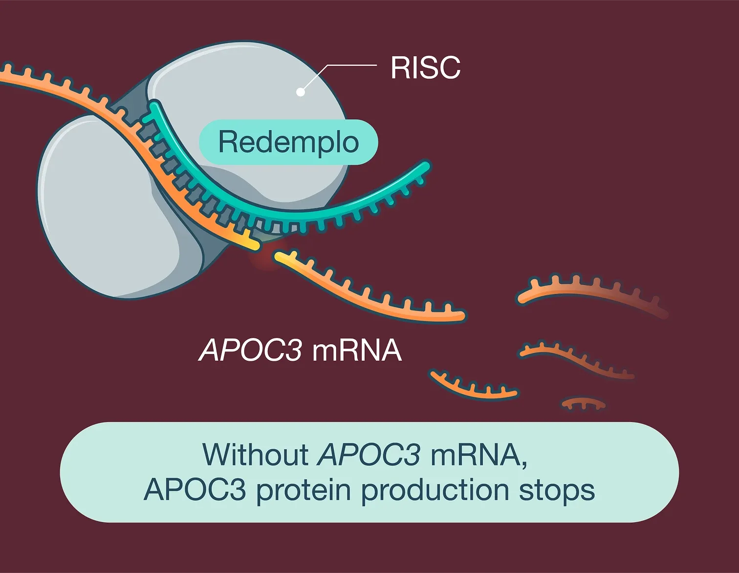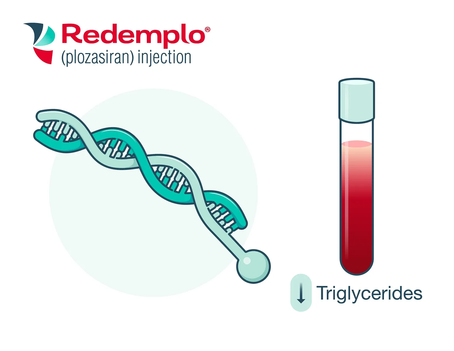 REDEMPLO® (plozasiran) is an injectable prescription medicine used together with a low-fat diet to reduce triglycerides (fat in the blood) in adults with a condition that keeps the body from breaking down fats called familial chylomicronemia syndrome (FCS).